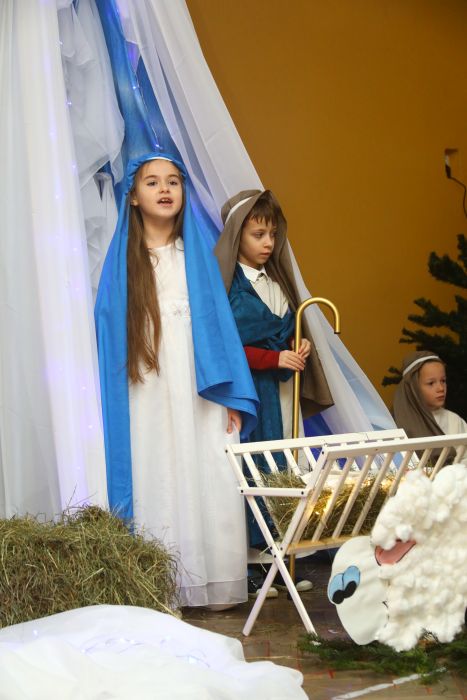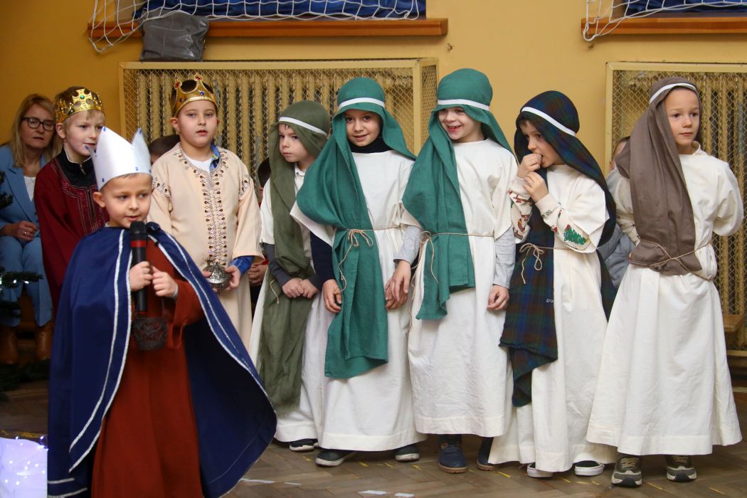 Jasełka to przedstawienie wpisane w tradycję naszej szkoły. Tym razem uczniowie z klasy 1a i klasy 1s wprowadzili widownię w świąteczny nastrój. Z wielkim zaangażowaniem przedstawili najważniejszy moment Świąt Bożego Narodzenia. Pierwszoklasiści wspaniale wcielili się w swoje role, co potwierdziła publiczność, która nagrodziła aktorów gromkimi brawami. Na koniec uczniowie wspólnie kolędowali w świątecznym nastroju.