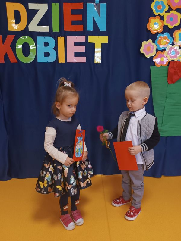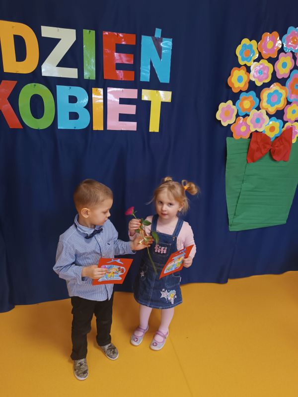 8 marca to doskonała okazja, by nauczyć naszych małych przedszkolaków, że to ważne święto wszystkich kobiet, także tych najmłodszych. Dzieci przyszły do przedszkola odświętnie ubrane, aby wspólnie celebrować to ważne wydarzenie. Przedszkolaki wspólnie odśpiewały piosenkę, wykonały laurki, a chłopcy przystąpili do wręczania kwiatów i składania życzeń.